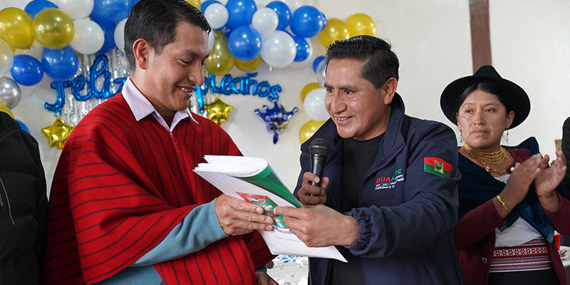 El alcalde del Cantón Guamote, acompañado de los señores concejales y el equipo técnico del GAD Municipal, realizó la entrega oficial de las resoluciones que permitirán a las famili...