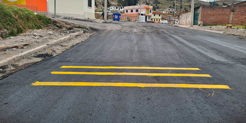 En el nuevo reasfaltado vial, se realizó la colocación de tres reductores de velocidad, el personal de Servicios Generales del GADMC-Guamote, realizan el pintado preventivo para que...